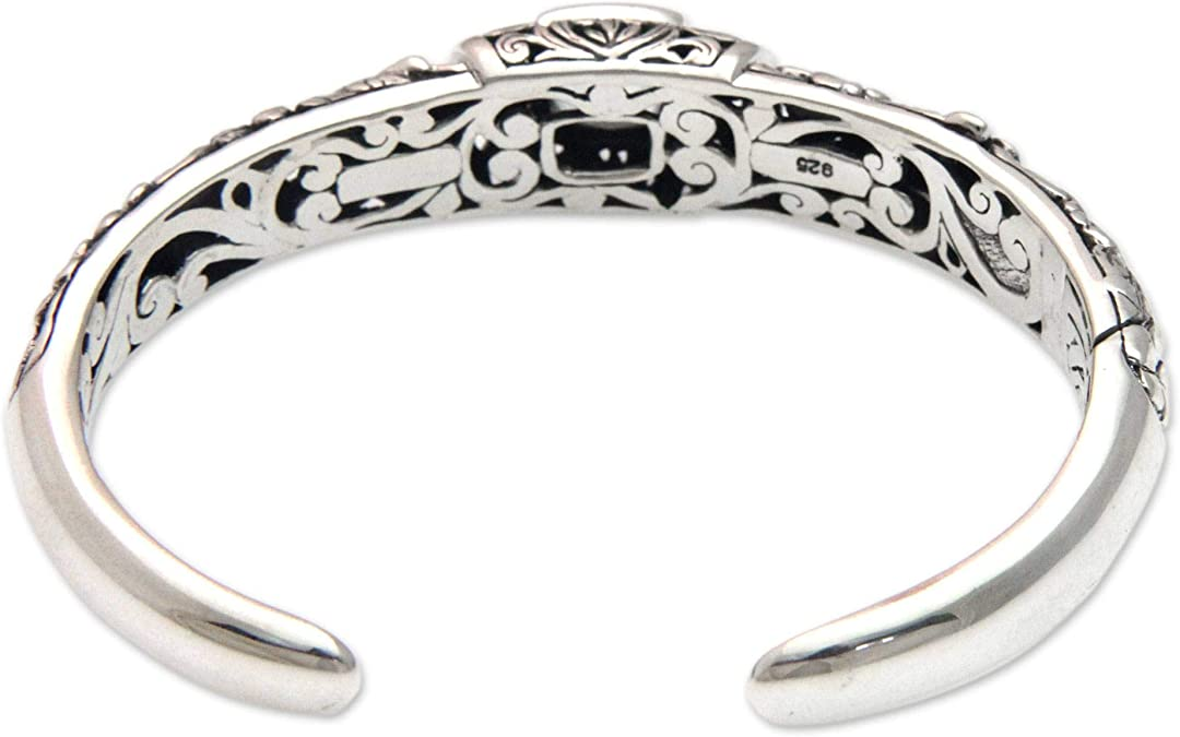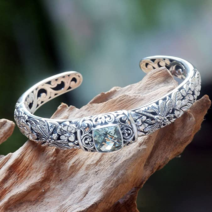 NOVICA Prasiolite .925 Sterling Silver Cuff Bracelet 'Dragonfly Frangipanis'