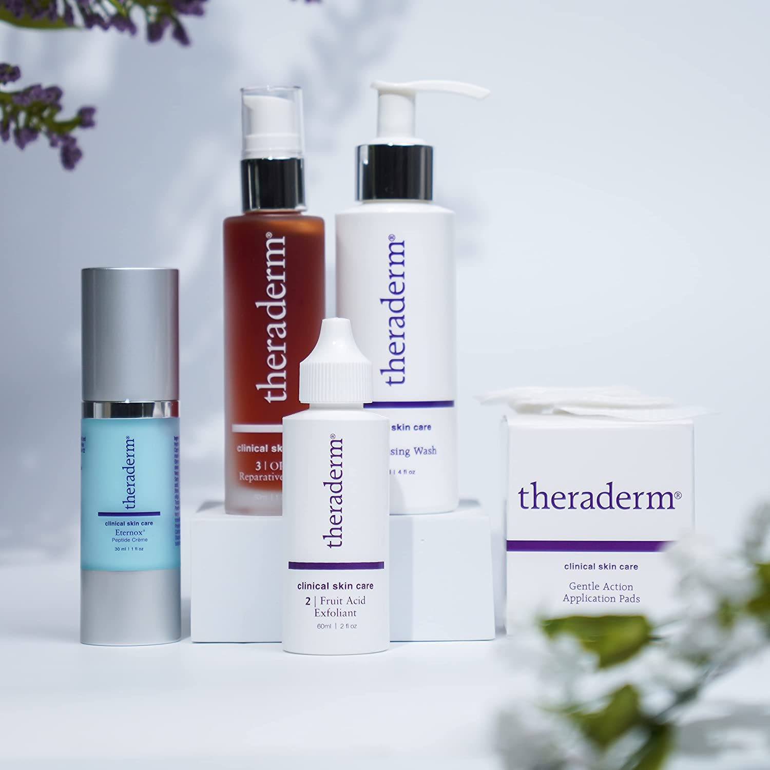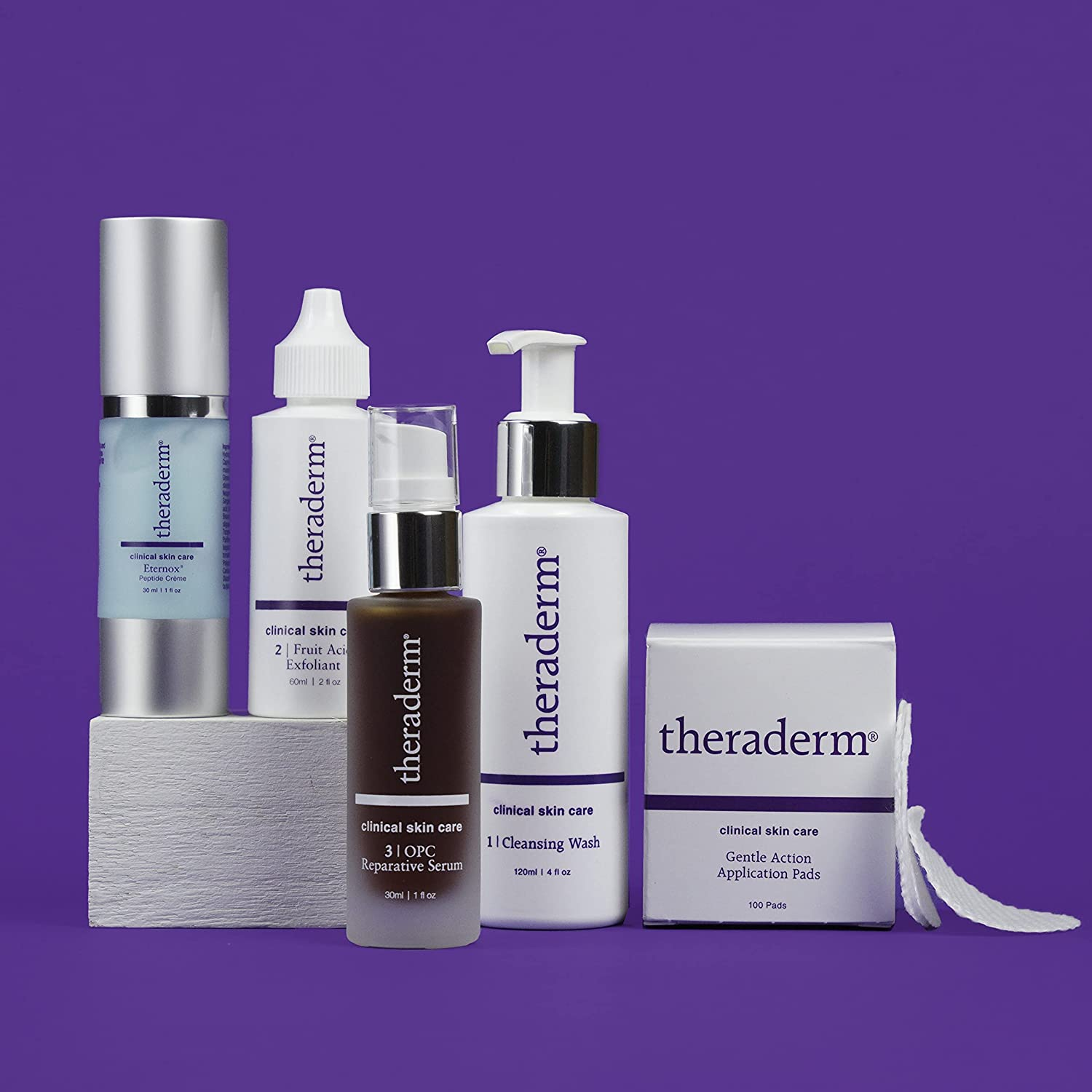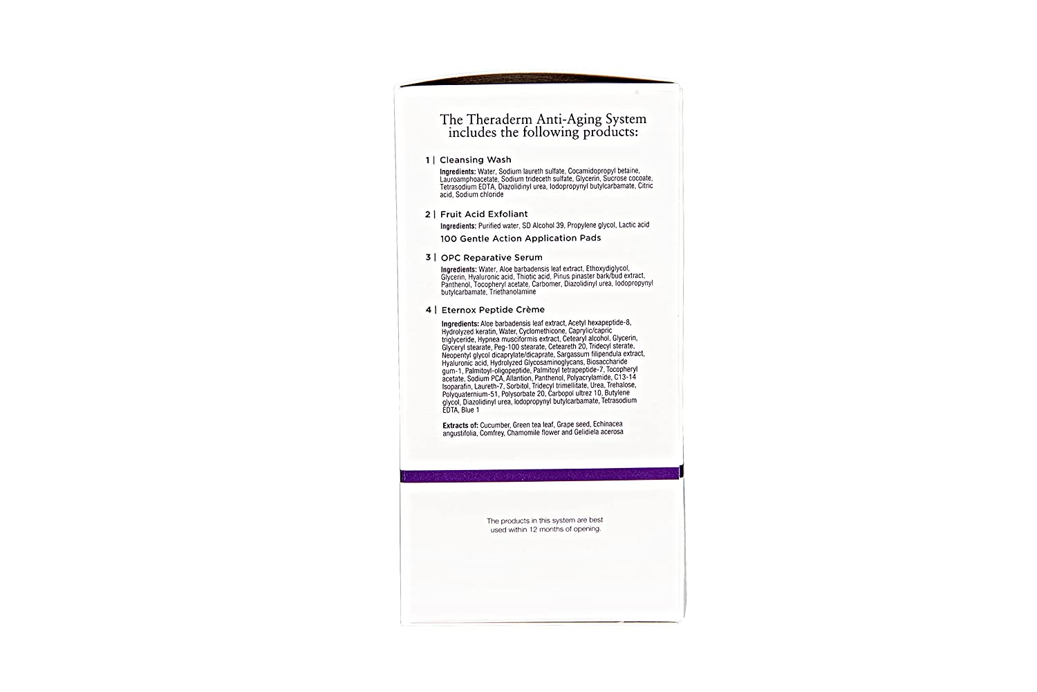 • Looking for affordable medical-grade, anti-aging skin care? Anti-Aging System is a daily skin care regimen that exfoliates, moisturizes and traps harmful free radicals. Three patented peptides (one unique to Theraderm) act in concert to minimize moderate wrinkles and tighten lax neck skin. Pharmaceutical grade ingredients in Eternox Peptide Crème provide the anti-aging support skin needs to stay smooth and healthy by supporting gene expression, transcription factors and cell signaling molecules.