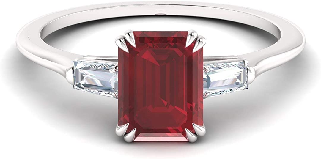 Diamondere Natural and Certified Gemstone and Diamond Baguette Engagement Ring in 14K White Gold | 0.67 Carat Three Stone Ring for Women, US Size 4 to 9