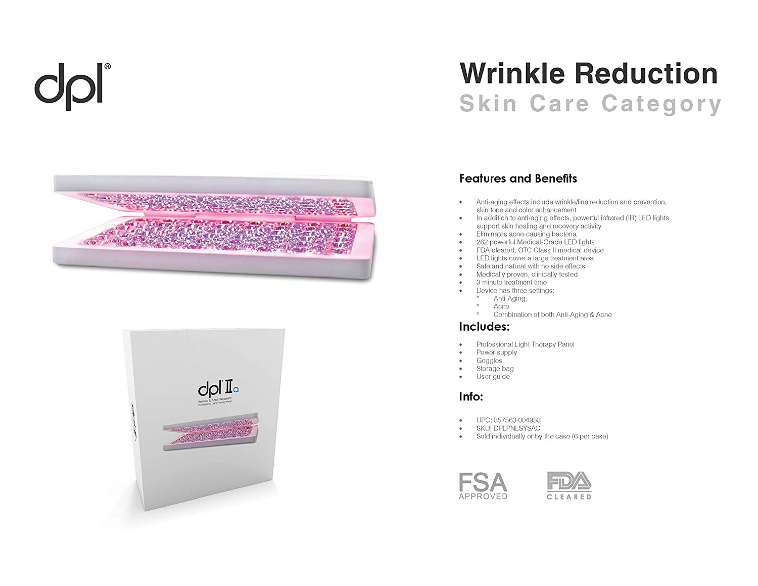 dpl IIa-Professional Wrinkle Reduction and Acne Treatment Light Therapy Panel-FDA Cleared Red LED Anti-Aging/Acne Reduction and Prevention Device